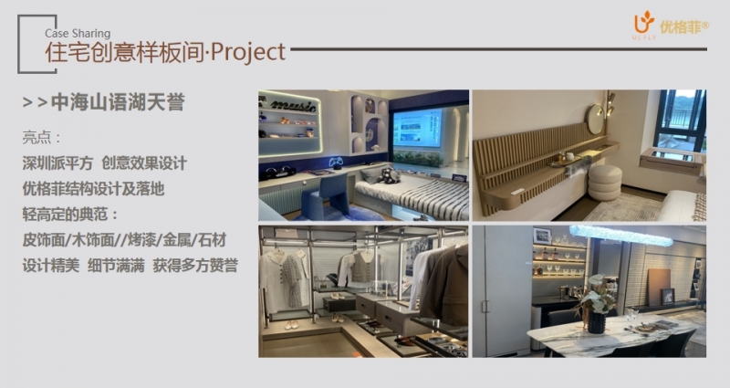 亮点: 深圳派平方 创意效果设计 优格菲结构设计及落地 轻高定的典范: 皮饰面/木饰面//烤漆/金属/石材 设计精美 细节满满 获得多方赞誉